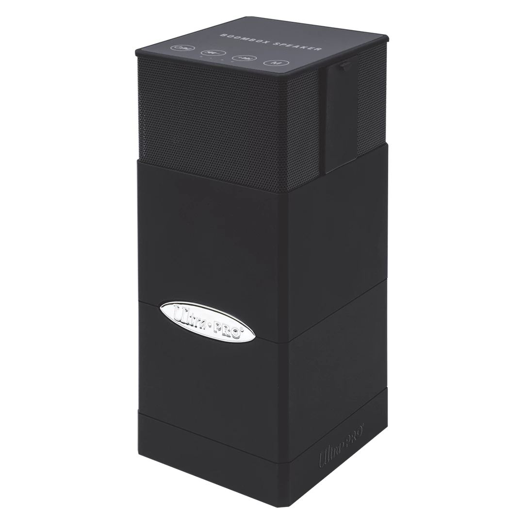 Yeah, we went there. What’s better than a strong, reliable, and customizable deck storage solution? What about one that can charge your phone or play your favorite tunes?! Get the party started with Ultra PRO’s Satin Tower BOOMBOX! The durable, injection molded plastic shell is designed to store and protect 100+ standard size trading cards in Ultra PRO Deck Protector sleeves and includes a spacious bottom compartment for dice, coins, or life counters. The unique snap-fit locking mechanism keeps your valuable cards and components securely stored. Enjoy easy Bluetooth connectivity, aux port, and USB charging compatibility.
