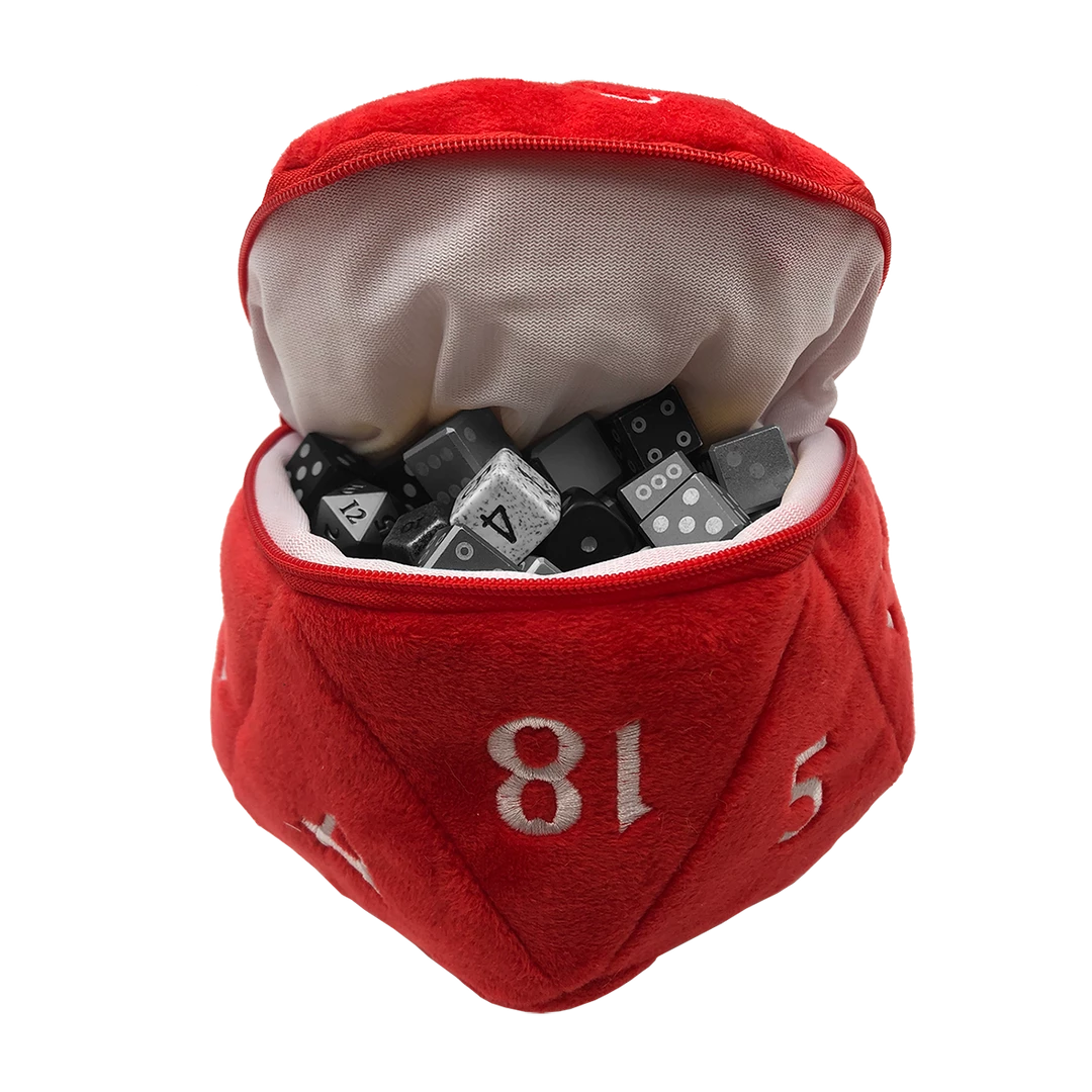 Need +5 to dice hoarding? We’ve got you covered with a new dice bag based on our ever-popular jumbo D20 plush! Zippered center pocket holds up to 50 dice, while carabiner-style hook keeps your dice securely at your side. This Plush D20 Dice Bag measures approximately 6.5 inches in diameter, and is the perfect accessory for any TTRPG (tabletop role-playing game) adventurer or dice enthusiast!