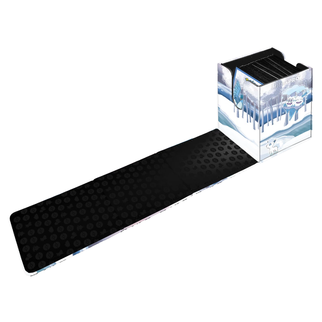Alcove Flip Boxes for Pokémon feature a vibrant, full-color image of Articuno, Alolan Vulpix, Vanilluxe, Delibird, and Snom in a leatherette finish; a strong magnetic closure; and dual thumb notches for easy access to your deck. This Deck Box® holds up to 100 standard size trading cards double-sleeved in Ultra PRO Deck Protector® sleeves.