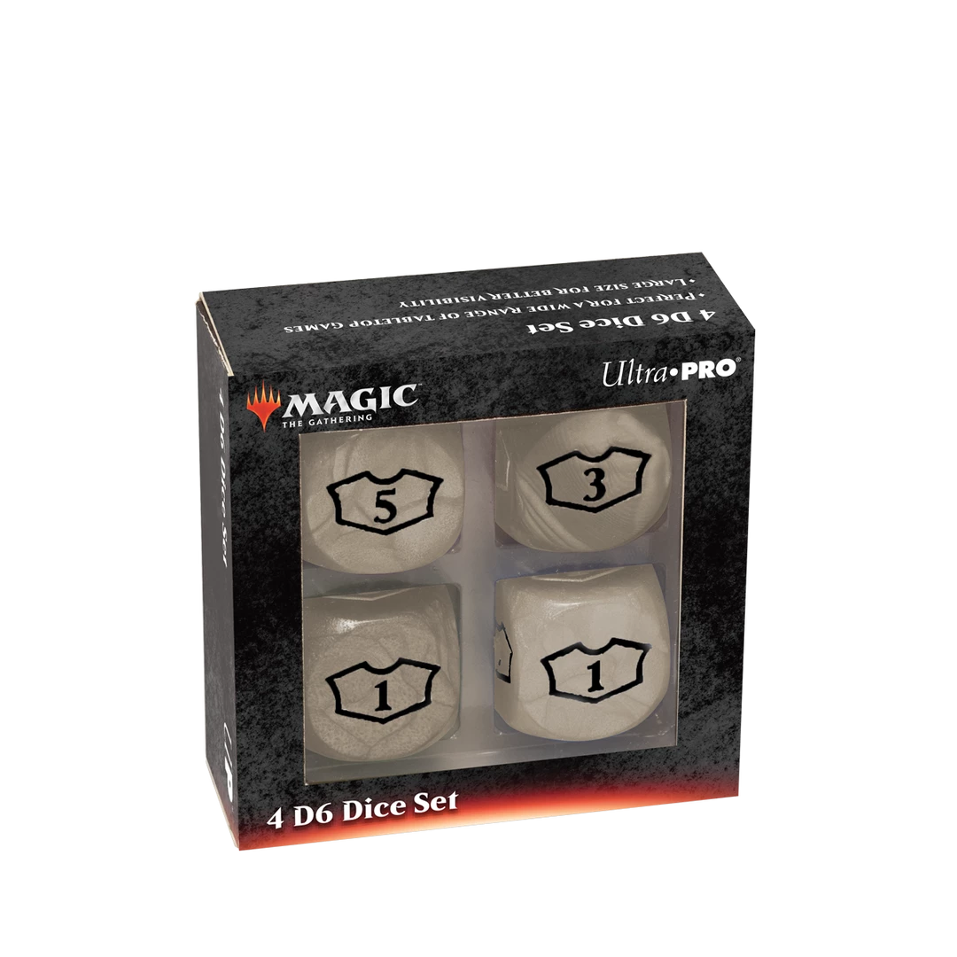 Keep track of your loyalty counters with the Magic: The Gathering 22MM Mana D6 Loyalty Dice set! Also great for use with a wide variety of tabletop games and comes in a reusable box & tray to organize and store your dice when not in use. Rounded corners let the dice roll further for better randomization and keep fragile table surfaces from denting. This set comes with 4 x D6 Loyalty Dice.
