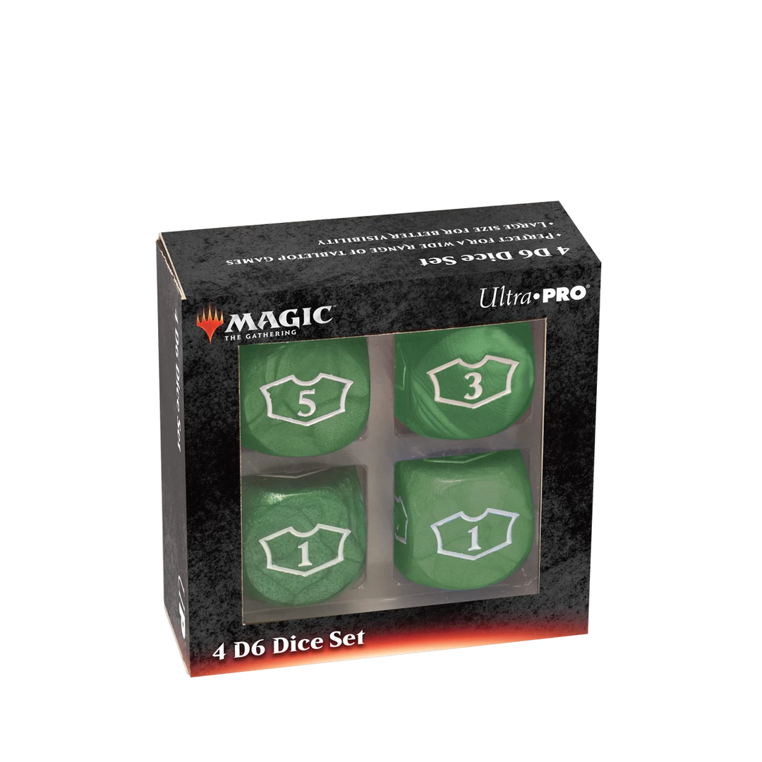 - Officially licensed dice are available in White, Blue, Black, Red, or Green Mana styles.