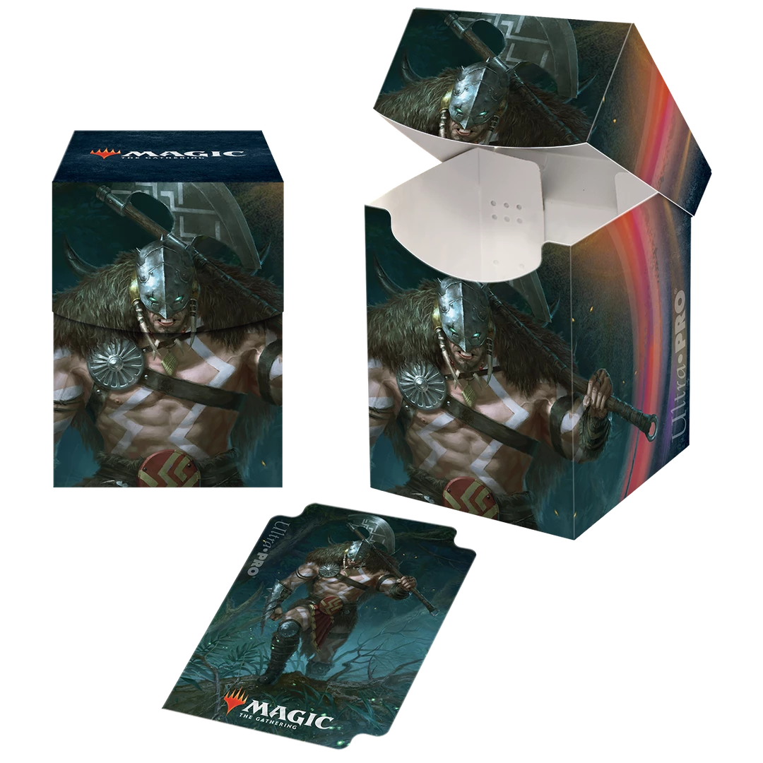 Store and protect your favorite deck with Ultra PRO’s M21 “Garruk, Unleashed” PRO-100+ Deck Box, sized to fit 100 standard-sized (2.5″ x 3.5″) gaming cards double sleeved in Ultra PRO Deck Protector sleeves. With full-color printing and limited production, this Deck Box is an excellent addition to any MTG collection. This box is light, easy-to-carry, and made with archival-safe, rigid polypropylene material. The self-locking lid design with a write-on strip makes it easy to secure and identify your deck, while thumb notch sections provide easy access to cards. Each box comes with one (1) deck divider with full-color artwork.