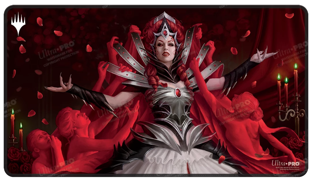 Stitched Playmats feature exclusive crops of popular Magic: The Gathering Innistrad Crimson Vow artwork of Olivia Key Art. Made with a soft fabric top to reduce damage to cards during play and a non-slip rubber backing to keep the playmat from shifting during use, playmats enhance the gameplay experience. The stitched edges offer an added premium feel. With dimensions of approximately 24 in. x 13.5 in., a playmat also makes an excellent oversize mousepad for home or office.