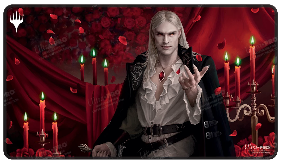 Stitched Playmats feature exclusive crops of popular Magic: The Gathering Innistrad Crimson Vow artwork of Sorin. Made with a soft fabric top to reduce damage to cards during play and a non-slip rubber backing to keep the playmat from shifting during use, playmats enhance the gameplay experience. The stitched edges offer an added premium feel. With dimensions of approximately 24 in. x 13.5 in., a playmat also makes an excellent oversize mousepad for home or office.