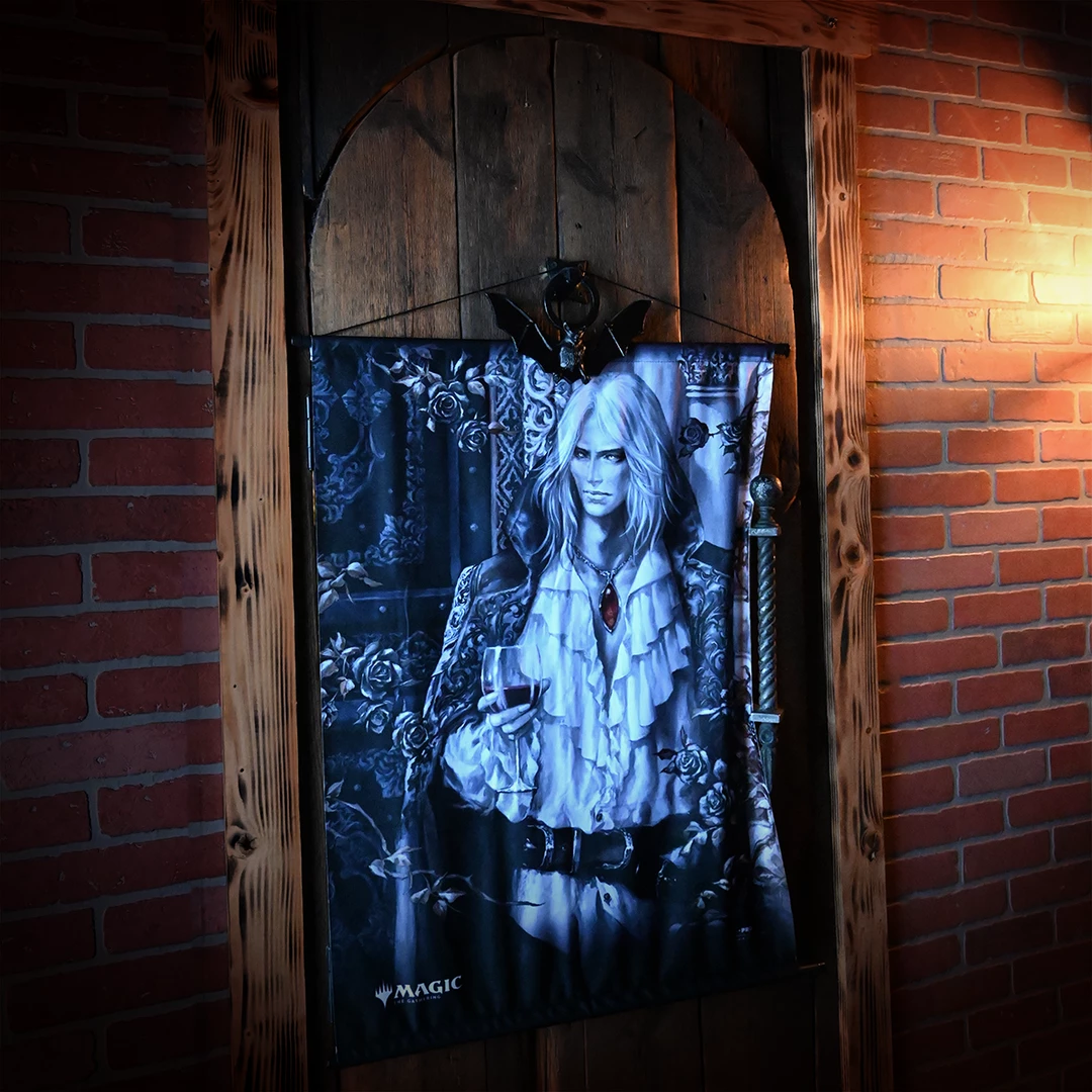 Wall Scrolls for Magic: The Gathering Innistrad Crimson Vow feature beautiful, vibrant artwork of Sorin the Mirthless. Rods and hanging cord are black for a classic and consistent look. With dimensions of 26.8 in. x 37.4 in., these Wall Scrolls make the perfect decorations for your home or office. The “UP” logo on the collapsible rod ends verify authenticity.