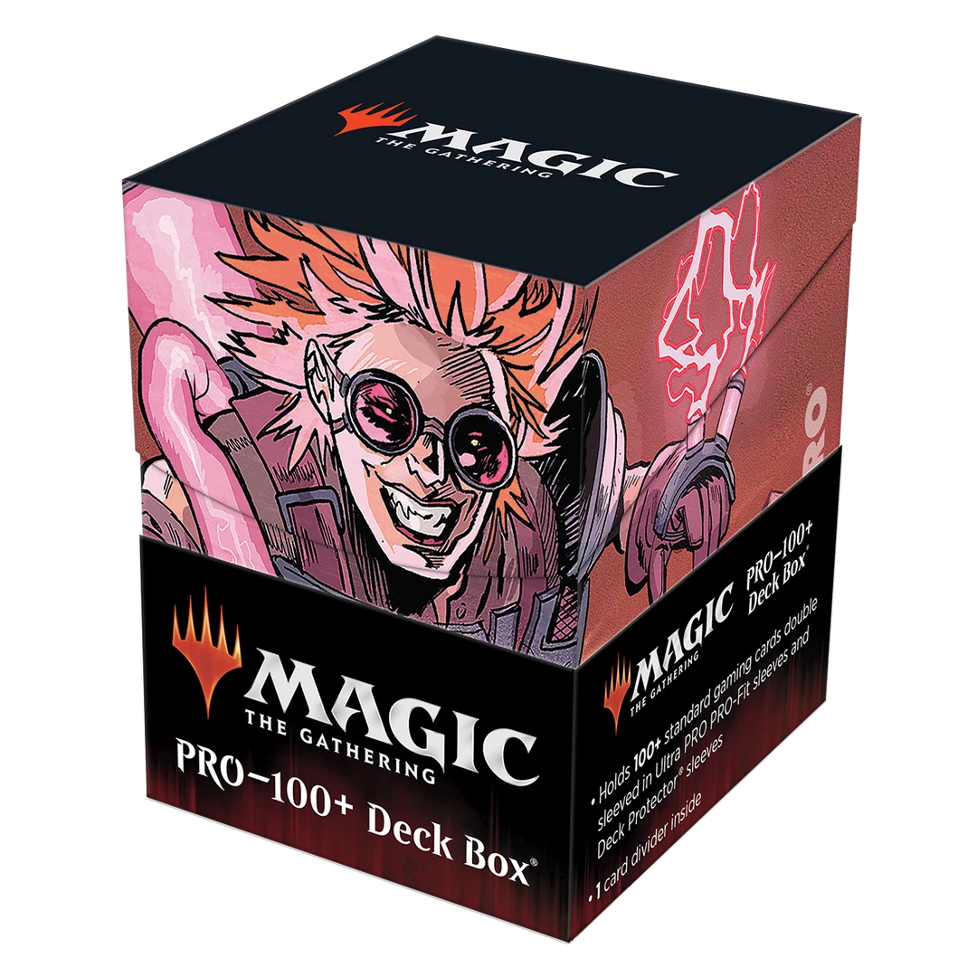 The 100+ Deck Box features vibrant, full-color artwork of Reckless Stormseeker from Magic: The Gathering and includes a deck divider. Made with archival-safe, non-PVC, rigid polypropylene materials, you can store up to 100 double-sleeved cards with confidence. The self-locking lid keeps your cards securely stored when not in use, while also offering easy access. Sized for standard size trading cards.