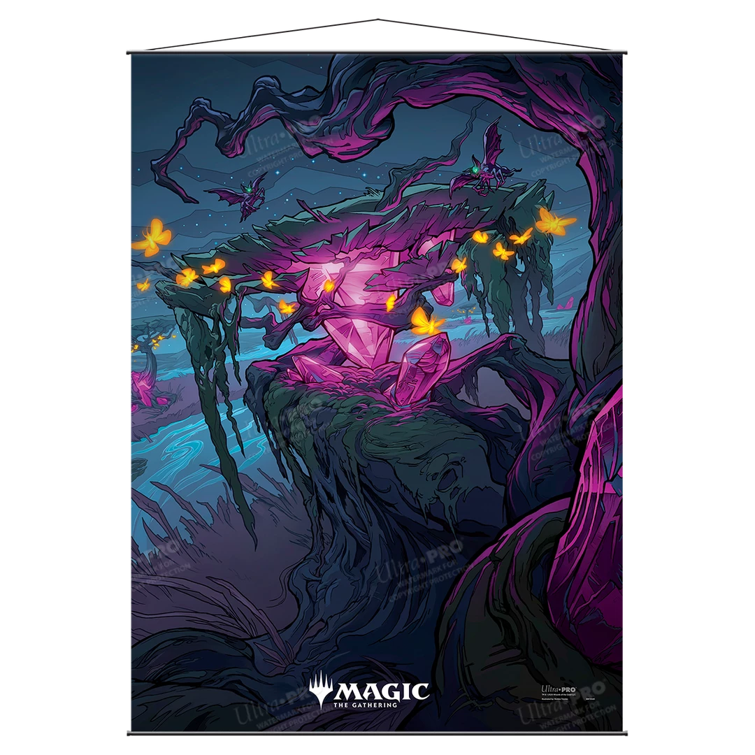 Bring Ikoria: Lair of Behemoths into your game room with this premium, silky fabric wall scroll with black rods & hanging cord. Featuring the artwork of Indatha Triome, our wall scrolls are made with the highest quality materials and printed with vibrant, full color, high-resolution details on fabric that’s soft and silky to the touch. Dimensions are approximately 37.4″ x 16″. This officially licensed product is made only by Ultra PRO International – authenticity can be verified by our “UP” logo imprint on the rod ends.