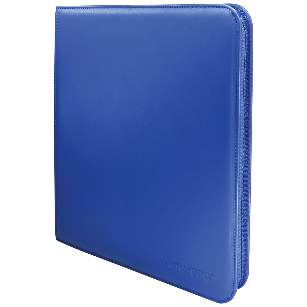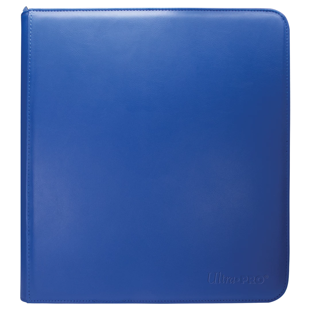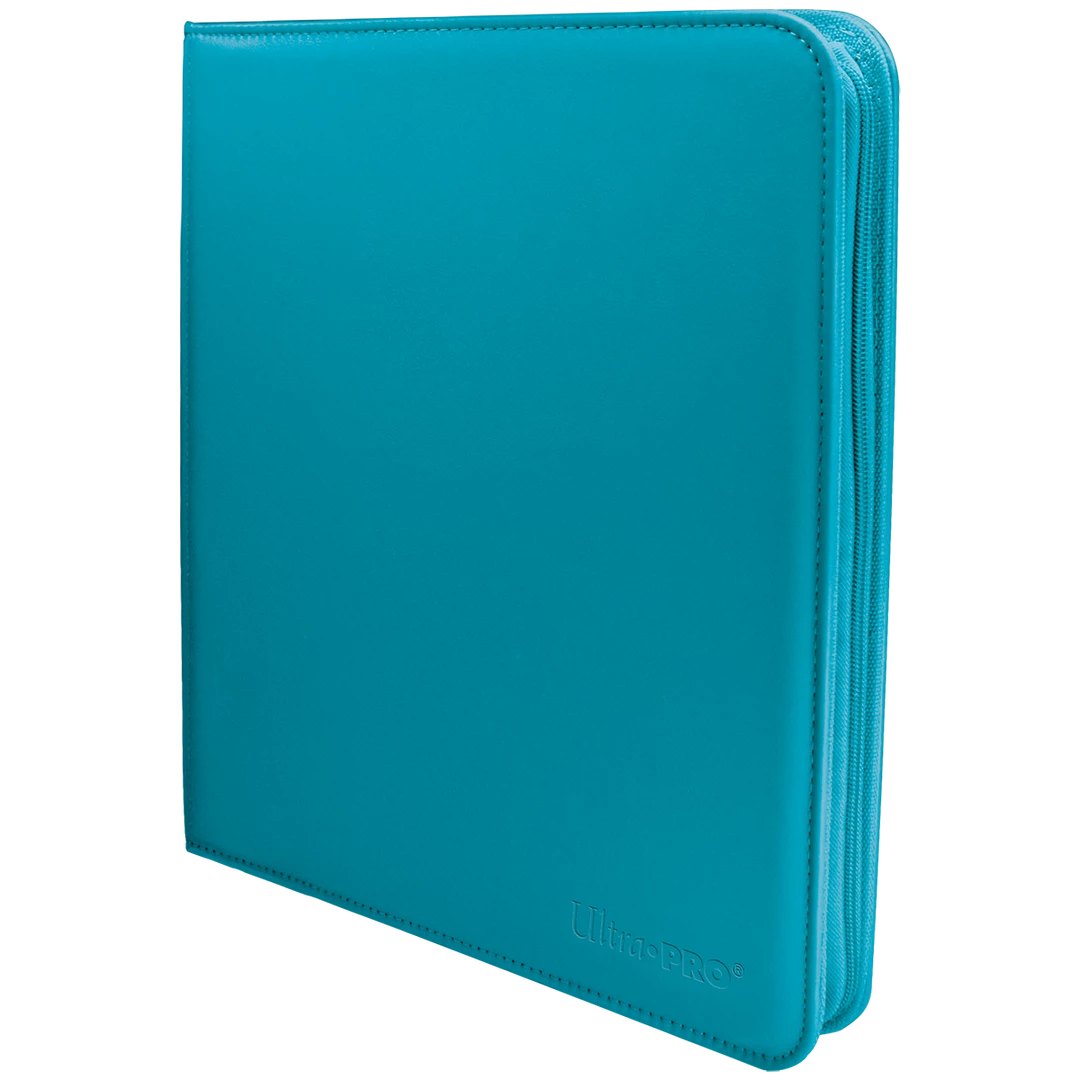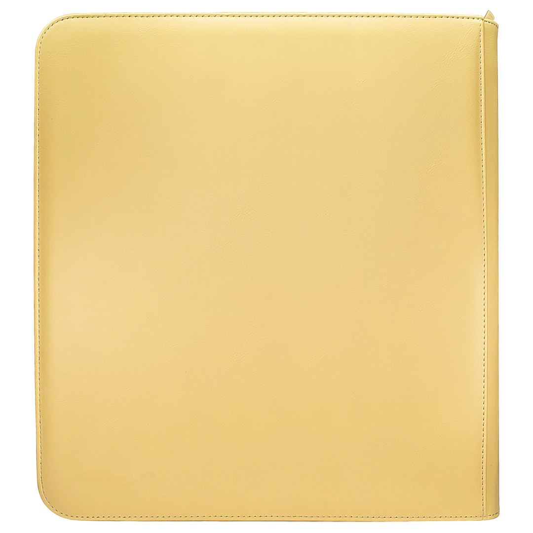 The Vivid 12-Pocket Zippered PRO-Binders are designed for collecting and organizing playsets of your favorite trading cards. Each binder features a padded leatherette cover with a matching zipper closure and pull tab. After unzipping the binder, you’ll find twenty 12-pocket pages sized for standard trading cards in side-loading pockets, allowing you to store up to 480 cards in Deck Protector sleeves. Pages feature a low-friction black backing, creating a separation between the front and back pockets as well as providing cards a classic framed look. Every PRO-Binder is made with acid-free, non-PVC materials to ensure your cards are protected and preserved. The 12-Pocket Playset Premium PRO-Binders are available in 8 colors: Blue, Green, Purple, Red, Light Blue, Yellow, Teal, and Black.