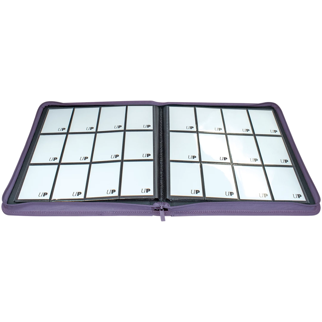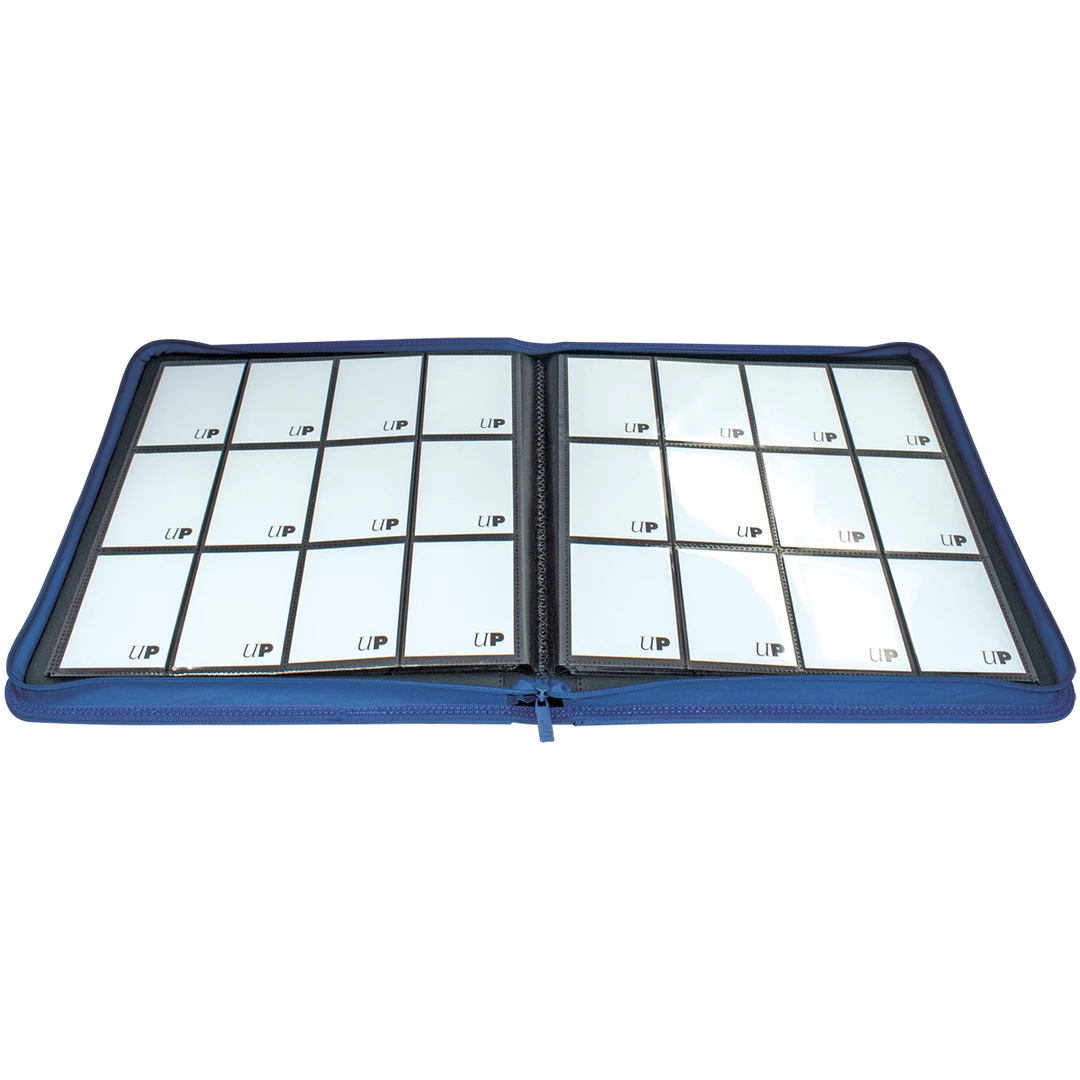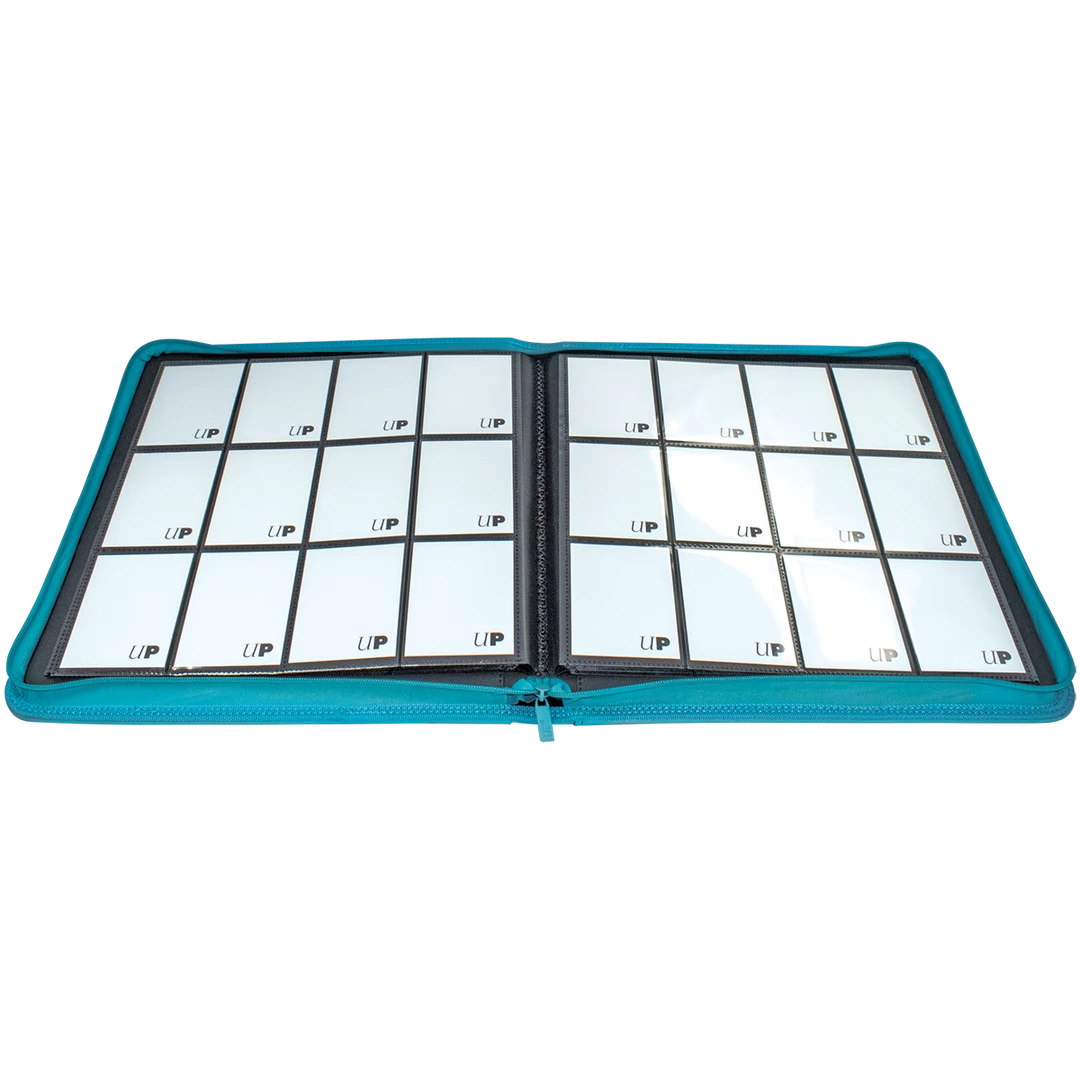 The Vivid 12-Pocket Zippered PRO-Binders are designed for collecting and organizing playsets of your favorite trading cards. Each binder features a padded leatherette cover with a matching zipper closure and pull tab. After unzipping the binder, you’ll find twenty 12-pocket pages sized for standard trading cards in side-loading pockets, allowing you to store up to 480 cards in Deck Protector sleeves. Pages feature a low-friction black backing, creating a separation between the front and back pockets as well as providing cards a classic framed look. Every PRO-Binder is made with acid-free, non-PVC materials to ensure your cards are protected and preserved. The 12-Pocket Playset Premium PRO-Binders are available in 8 colors: Blue, Green, Purple, Red, Light Blue, Yellow, Teal, and Black.