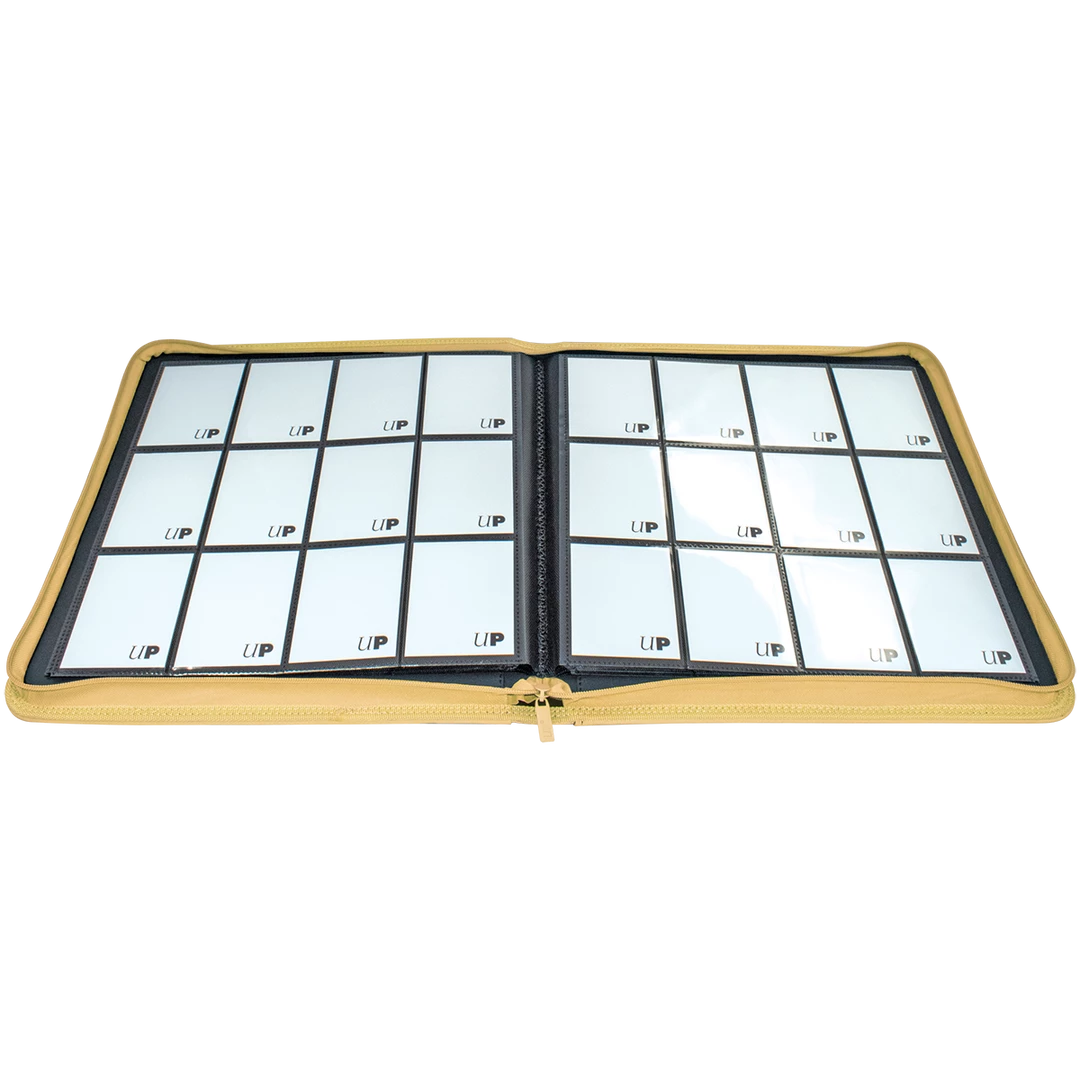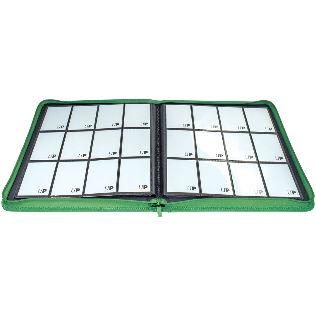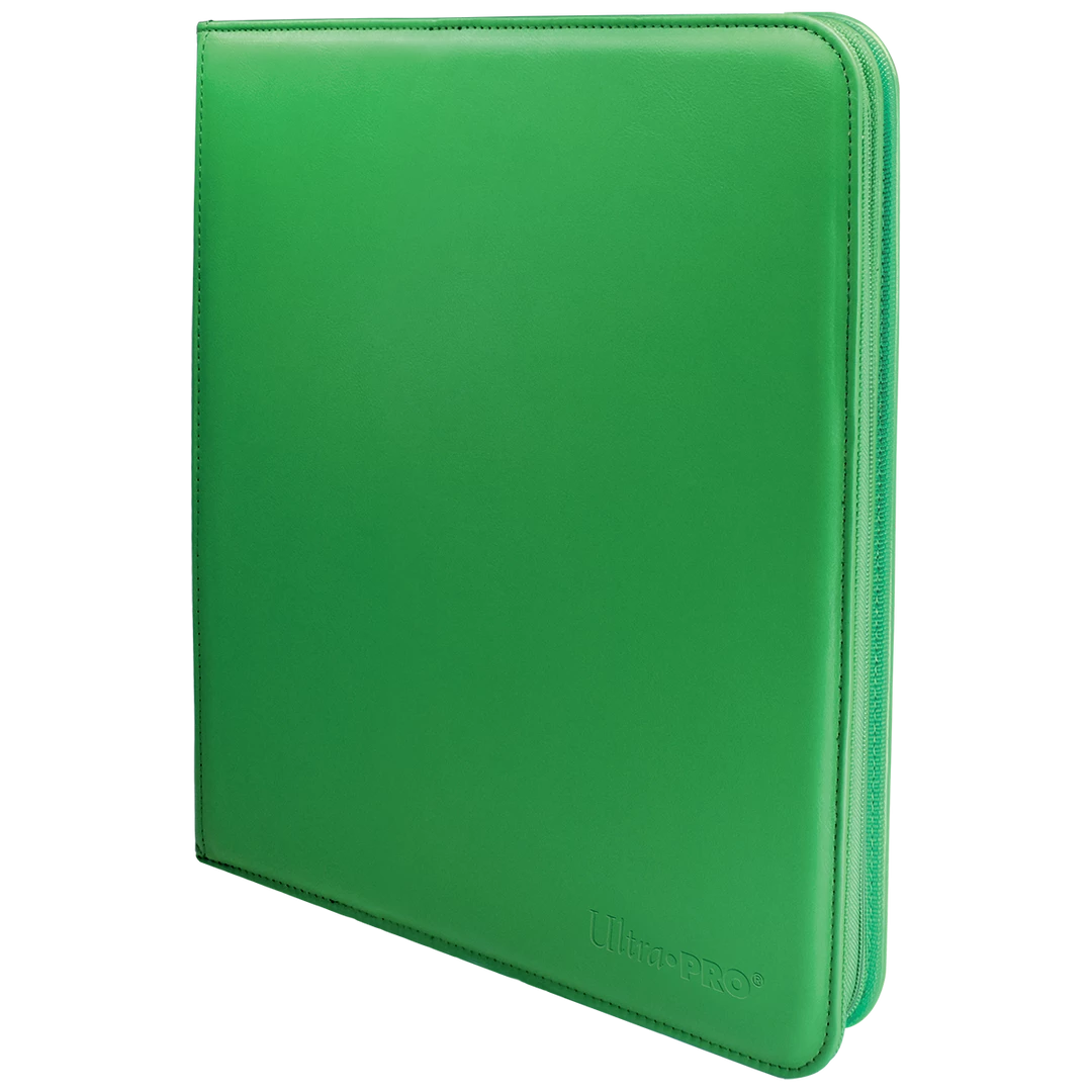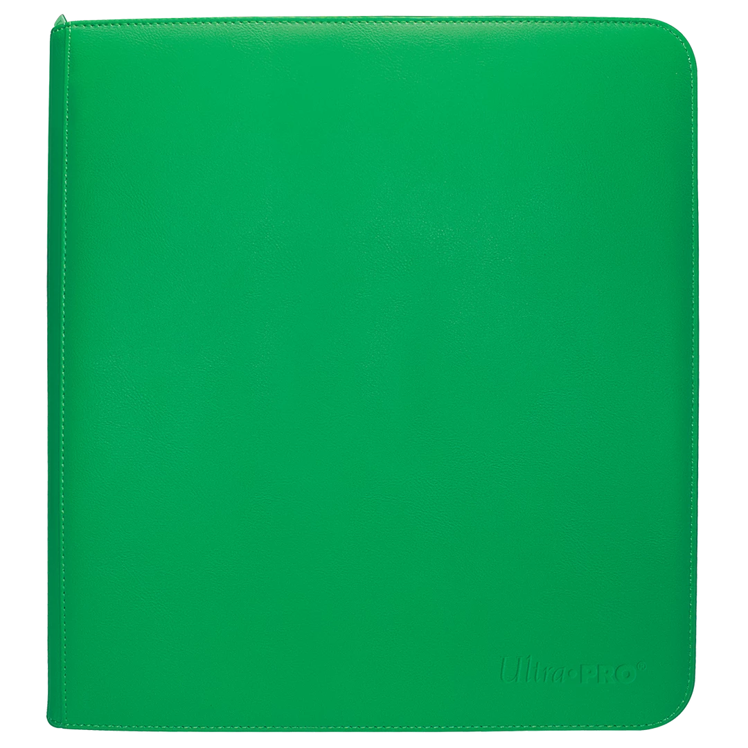 The Vivid 12-Pocket Zippered PRO-Binders are designed for collecting and organizing playsets of your favorite trading cards. Each binder features a padded leatherette cover with a matching zipper closure and pull tab. After unzipping the binder, you’ll find twenty 12-pocket pages sized for standard trading cards in side-loading pockets, allowing you to store up to 480 cards in Deck Protector sleeves. Pages feature a low-friction black backing, creating a separation between the front and back pockets as well as providing cards a classic framed look. Every PRO-Binder is made with acid-free, non-PVC materials to ensure your cards are protected and preserved. The 12-Pocket Playset Premium PRO-Binders are available in 8 colors: Blue, Green, Purple, Red, Light Blue, Yellow, Teal, and Black.