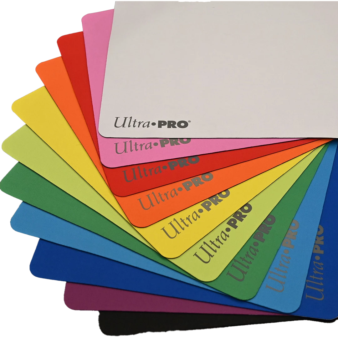 The Solid Color Playmat with premium fabric top to prevent damage to cards during gameplay. Ideal for an artist drawing directly on the mat with colored pens. Also works great as a desktop mat for computer workstations. Smooth fabric surface works with all major mouse types and covers an area large enough to place both keyboard/laptop and mouse. Dimensions are approximately 24″ X 13-1/2″. Rubber backing lets the playmat lay flat and prevents the mat from shifting during use.