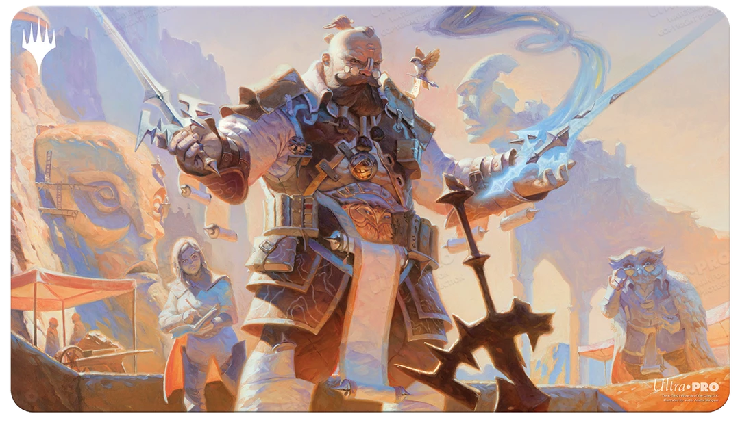 Up your game a beautiful, full-color playmat featuring Osgir, The Reconstructor art from Magic: the Gathering. Made with a premium fabric top to prevent damage to cards during gameplay for tabletop gamers. With dimensions of approximately 24″ X 13-1/2″, this playmat is also the perfect decorative oversized mouse pad for computer and laptop workstations. Non-slip rubber backing lets the playmat lay flat and prevents it from shifting during use.