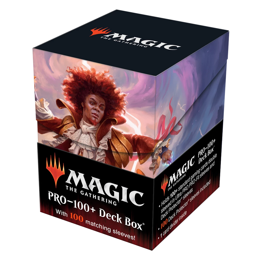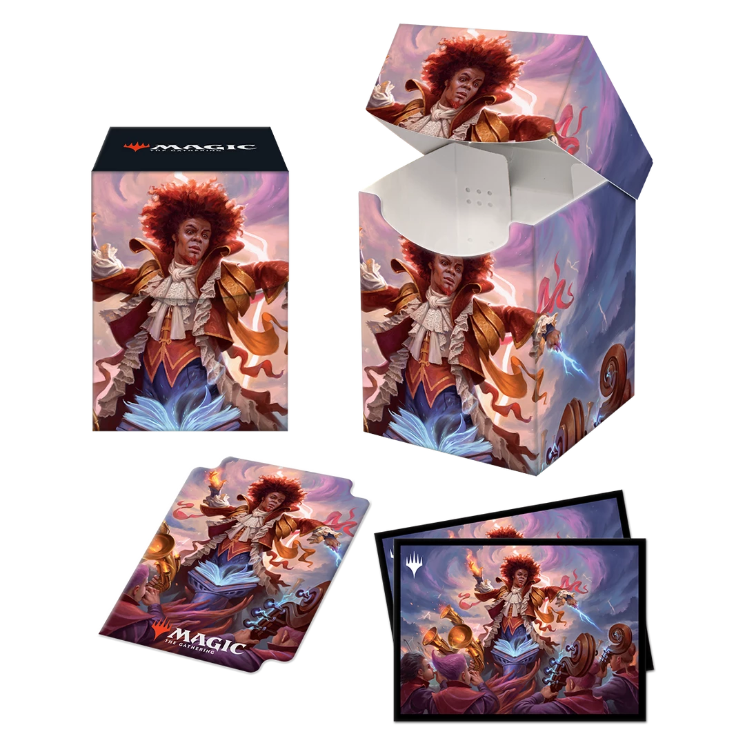Become a legend at your next game night with matching Deck Protector sleeves and Deck box featuring vibrant, full-color legendary Zaffai, Thunder Conductor art from the C21 Magic: The Gathering set release! Deck Protector sleeves are made with archival-safe, polypropylene materials, using ChromaFusion technology to provide lasting protection for your cards and keeps art intact and peel-free. 100 standard size Deck Protector sleeves come with a matching deck divider and are packaged within a 100+ Deck Box with matching art, for the ultimate game play experience!