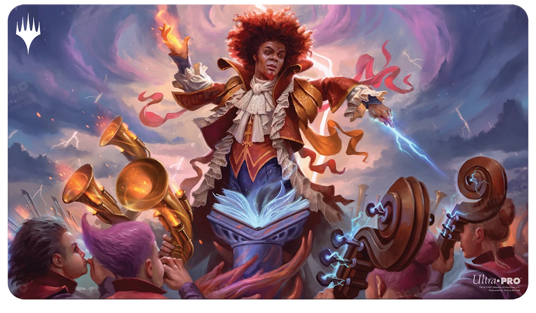 Up your game a beautiful, full-color playmat featuring Zaffai, Thunder Conductor art from Magic: The Gathering. Made with a premium fabric top to prevent damage to cards during gameplay for tabletop gamers. With dimensions of approximately 24″ X 13-1/2″, this playmat is also the perfect decorative oversized mouse pad for computer and laptop workstations. Non-slip rubber backing lets the playmat lay flat and prevents it from shifting during use.