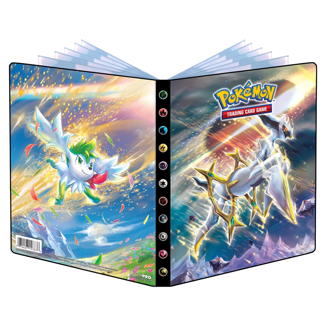 - Officially licensed Pokémon Trading Card Game 4-Pocket Portfolio featuring Arceus and Shaymin