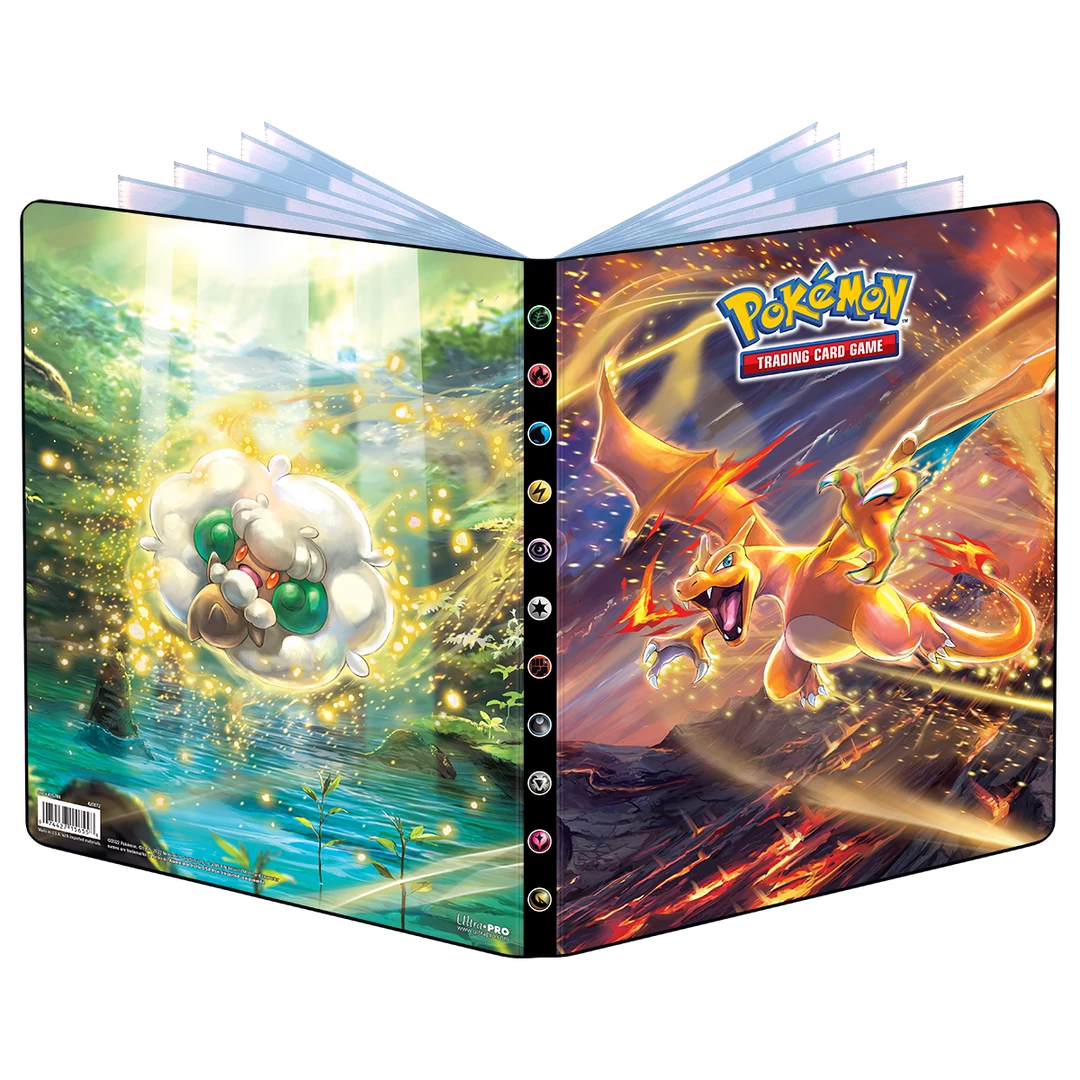 - Officially licensed Pokémon Trading Card Game 9-Pocket Portfolio featuring Charizard and Whimsicott